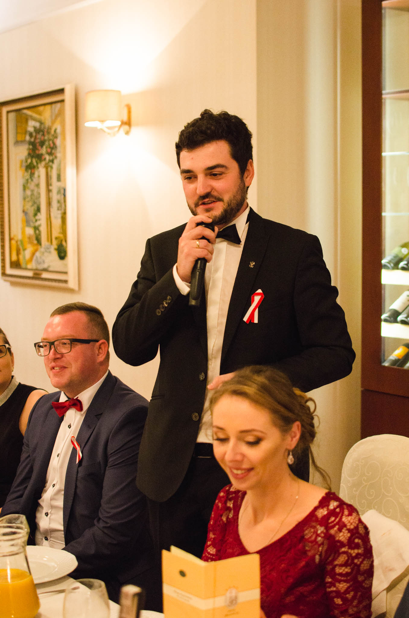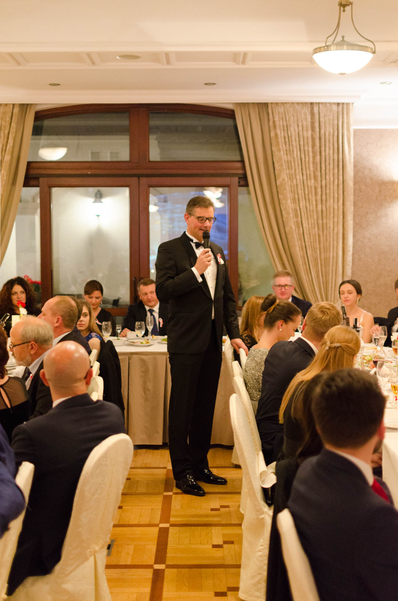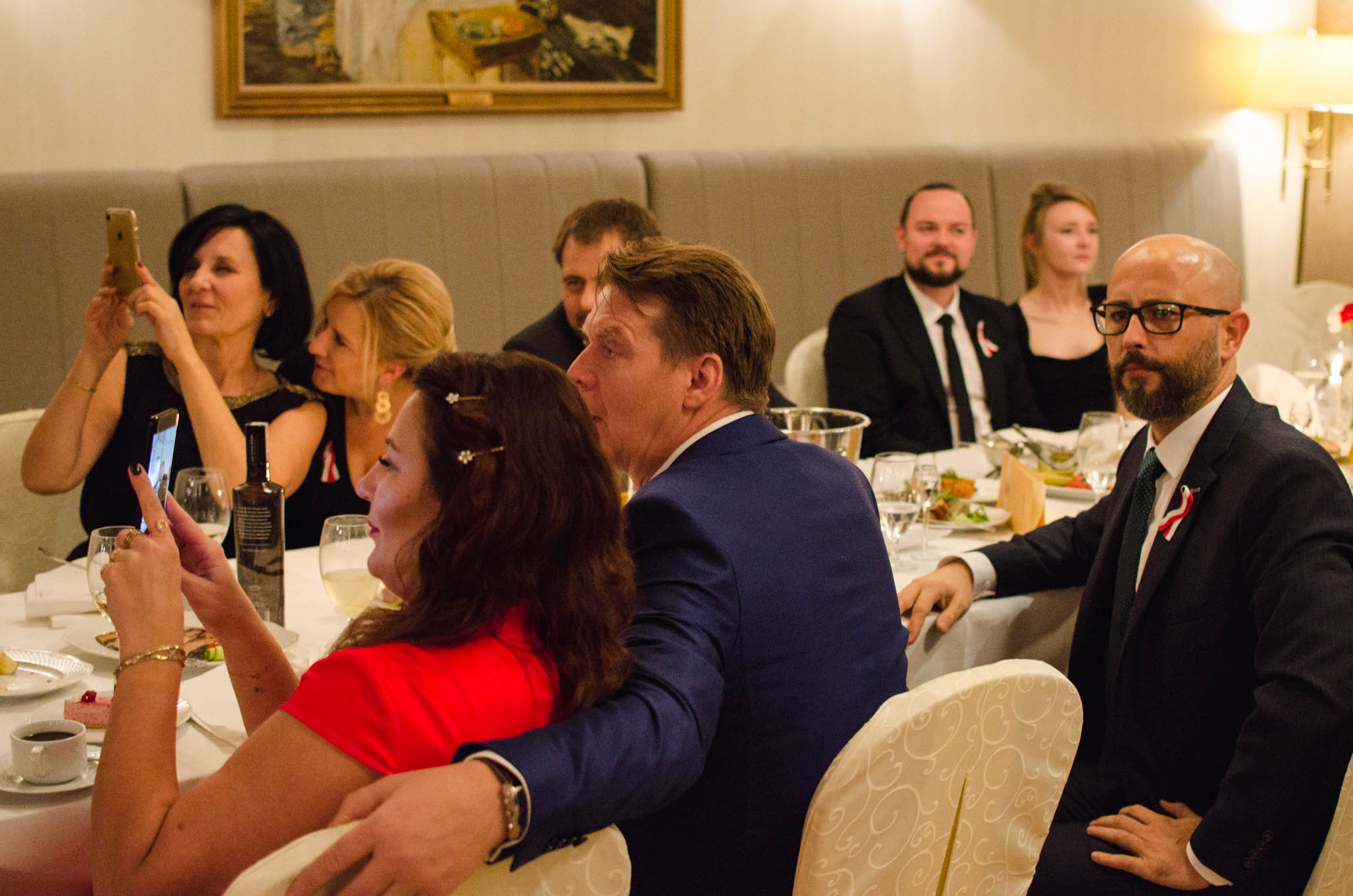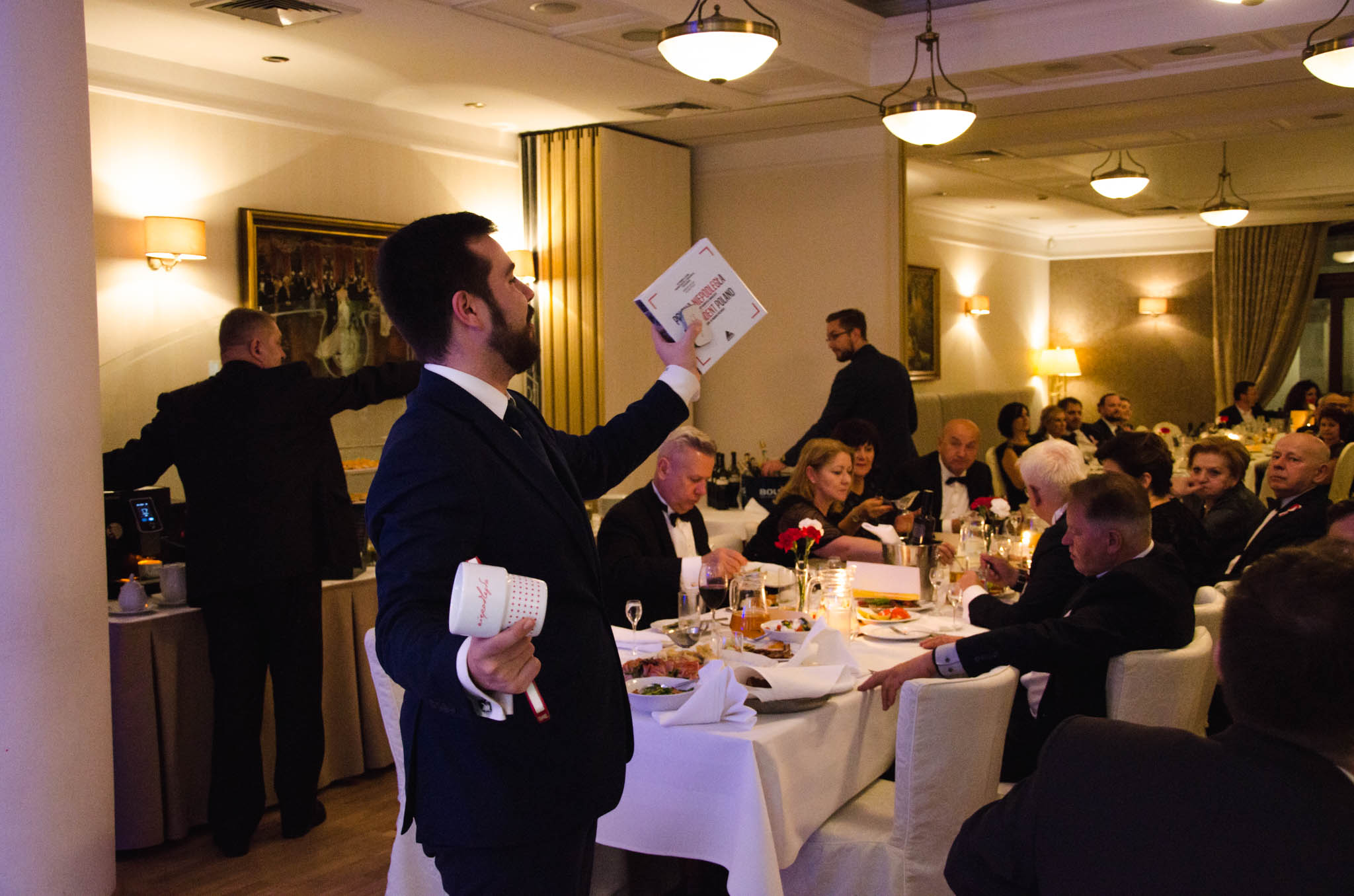 W balu wzięli udział działacze i sympatycy PIRS oraz PTG, lokalni przedsiębiorcy, naukowcy a także podlascy społecznicy. Przyjęcie rozpoczęliśmy przywitaniem gości przez naszego gospodarza – Wojciecha Strzałkowskiego, Piotra Lussę (PTG) oraz Jacka Słomę (PIRS). Po toaście i posmakowaniu pierwszych dań przyszedł czas na wspólne tańce, które prowadził zespół RAYA z Elżbietą Nadolną na czele. W tle rozbrzmiewały utwory z okresu dwudziestolecia międzywojennego, a także współczesne szlagiery. Ciekawe dysputy przedsiębiorców i działaczy społecznych przeplataliśmy ze śpiewami pieśni patriotycznych, które od godziny 21:00 prowadził niezastąpiony Wojciech Strzałkowski. O godzinie 23:00 nastąpił kulminacyjny punkt naszego balu, w którym to rozpoczęła się dobroczynna licytacja przedmiotów na rzecz wsparcia zakupu protezy nogi dla utalentowanej multimedalistki w pływaniu Pani Annie Omielan. W tym miejscu należy podziękować Michałowi Mucha oraz Wojciechowi Strzałkowskiemu za przekazanie na rzecz licytacji wielu przedmiotów z dziedziny sportu i kultury. Licytację poprowadził Jacek Słoma. Pierwsza zlicytowana została koszulka domowa Jagiellonii Białystok z podpisami piłkarzy, której szczęśliwym posiadaczem okazał się Tomasz Janik (prezes PTG). W trakcie licytacji niejednokrotnie dochodziło do pasjonującej i napiętej rywalizacji. W sumie dzięki hojności gości, udało nam się zebrać ponad 14.000 zł.
